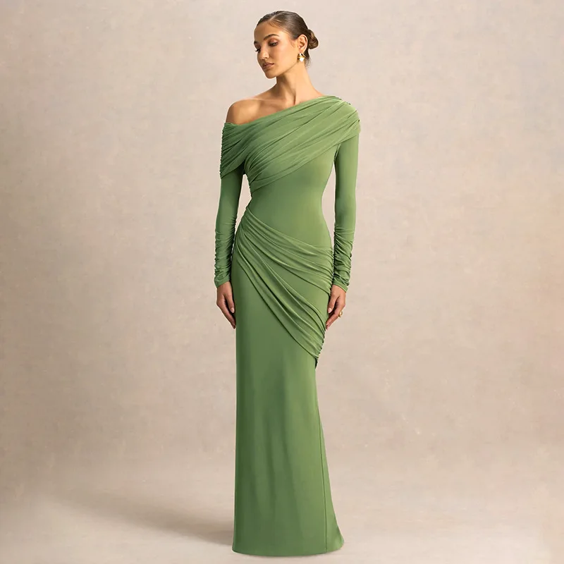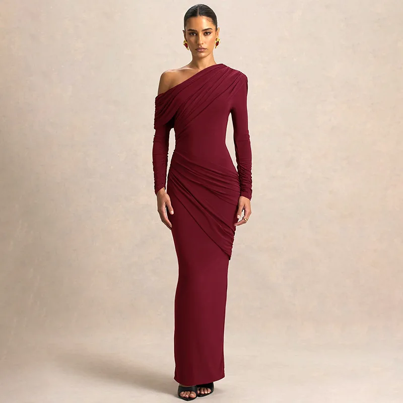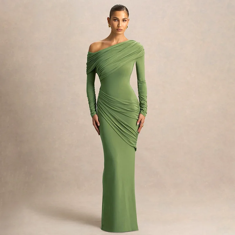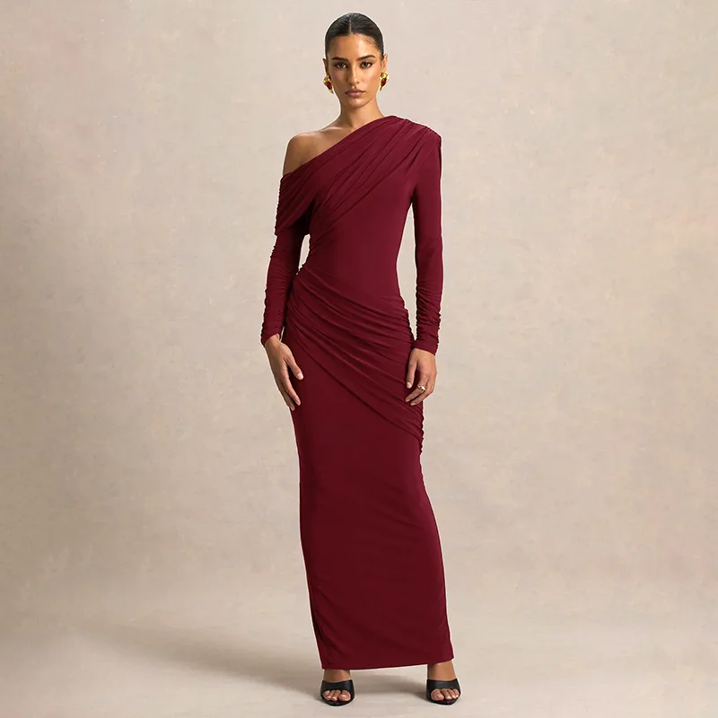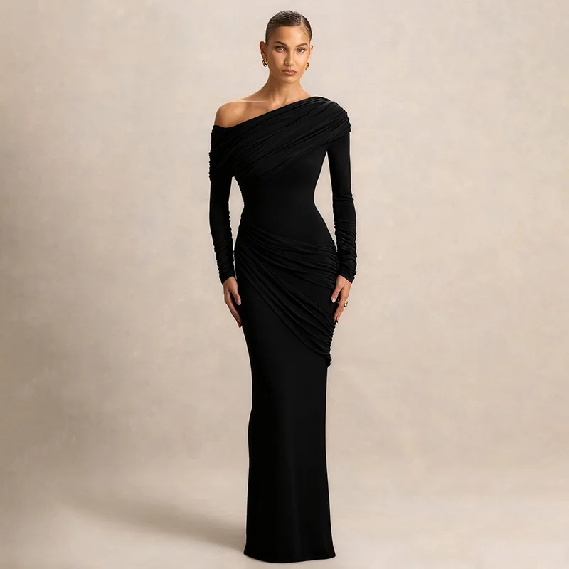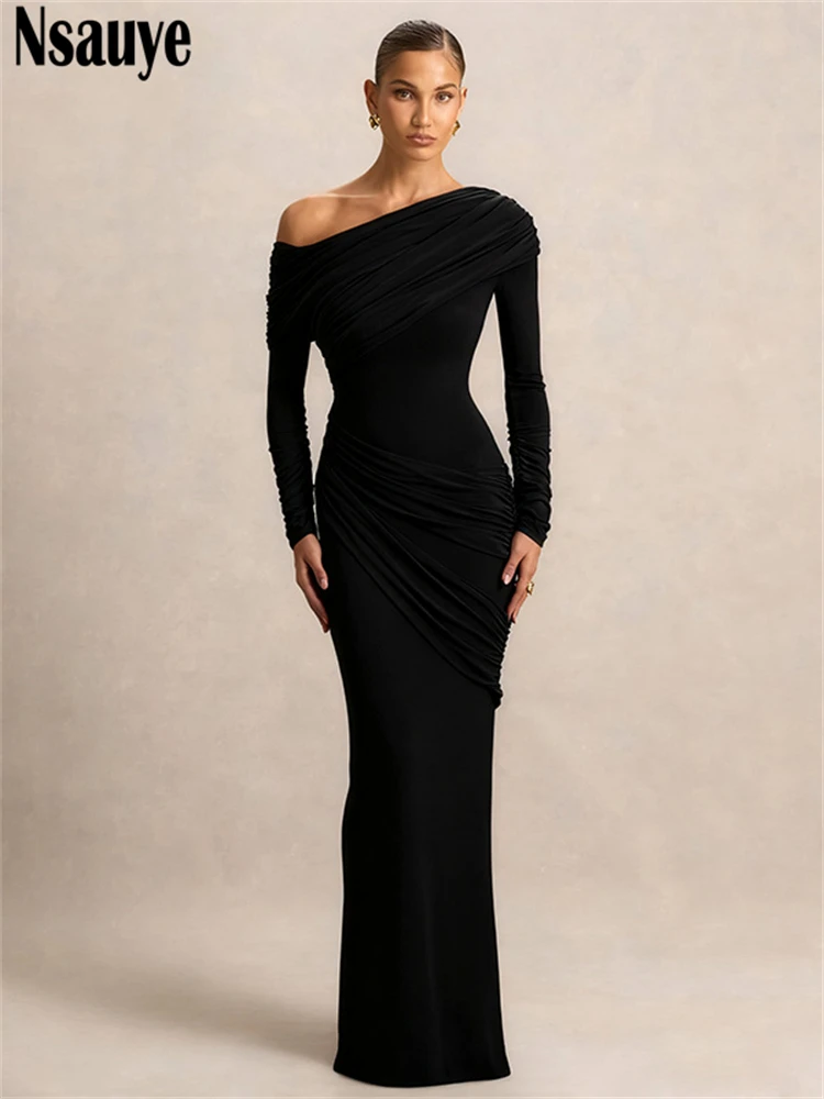 Victoria’s Vogue Sexy Women Long Sleeve Elegant Evening Party Night Club Dress Skinny Winter 2025 New Fashion Ruched High Waisted Dress