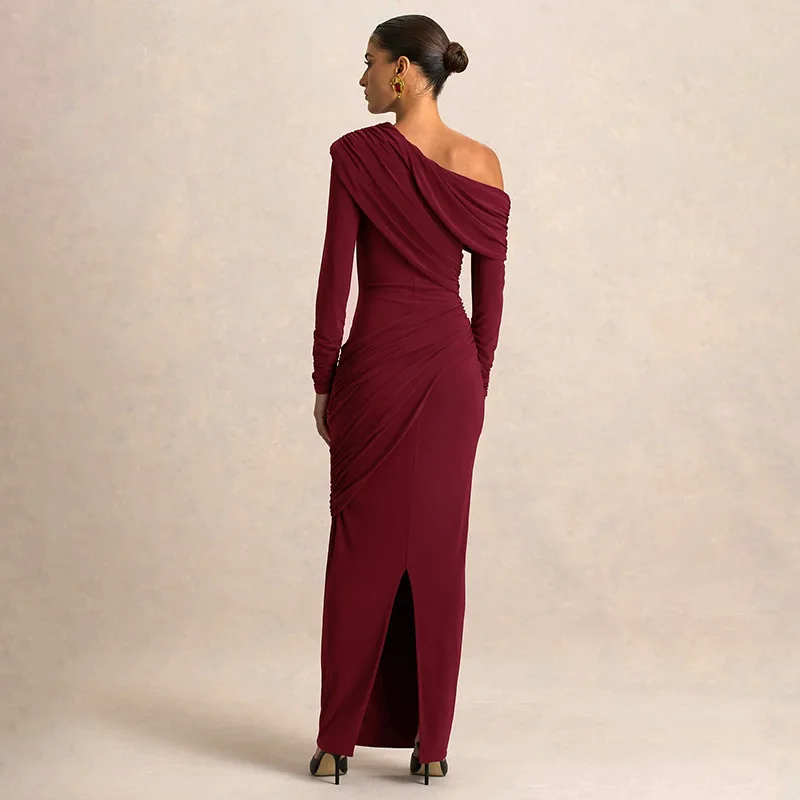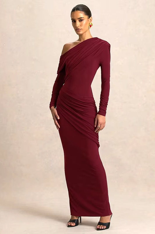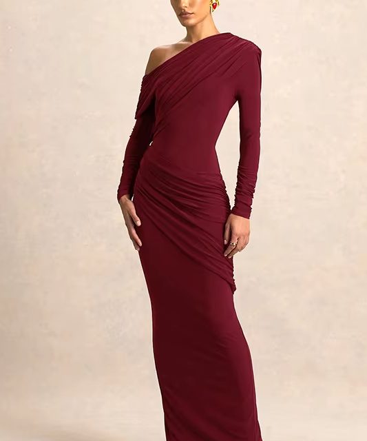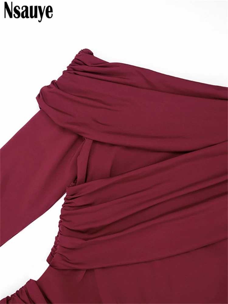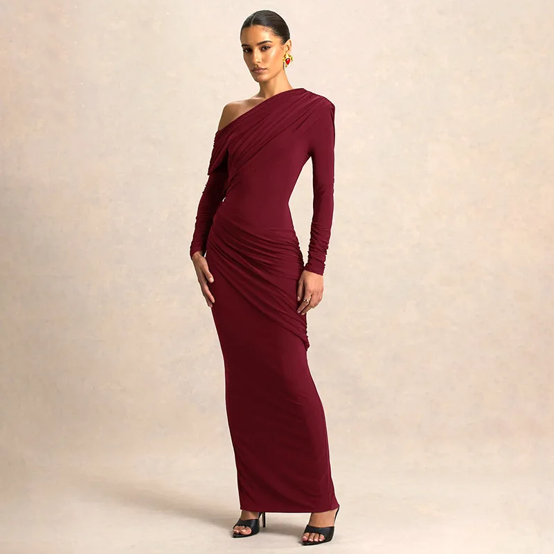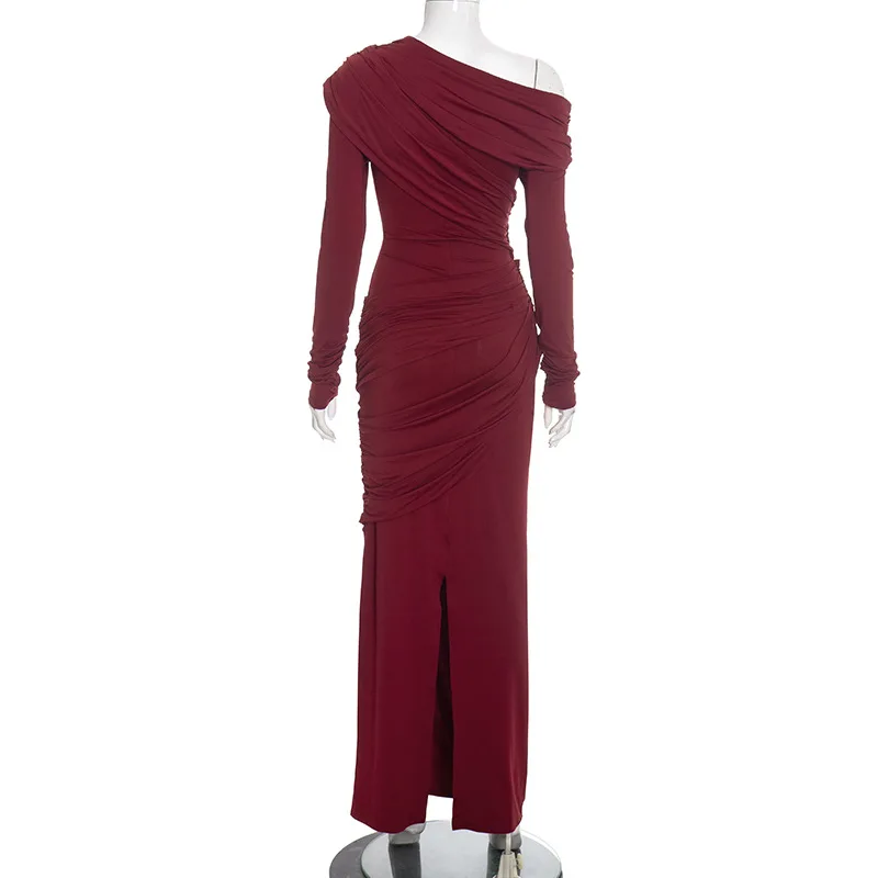 Victoria’s Vogue Sexy Women Long Sleeve Elegant Evening Party Night Club Dress Skinny Winter 2025 New Fashion Ruched High Waisted Dress