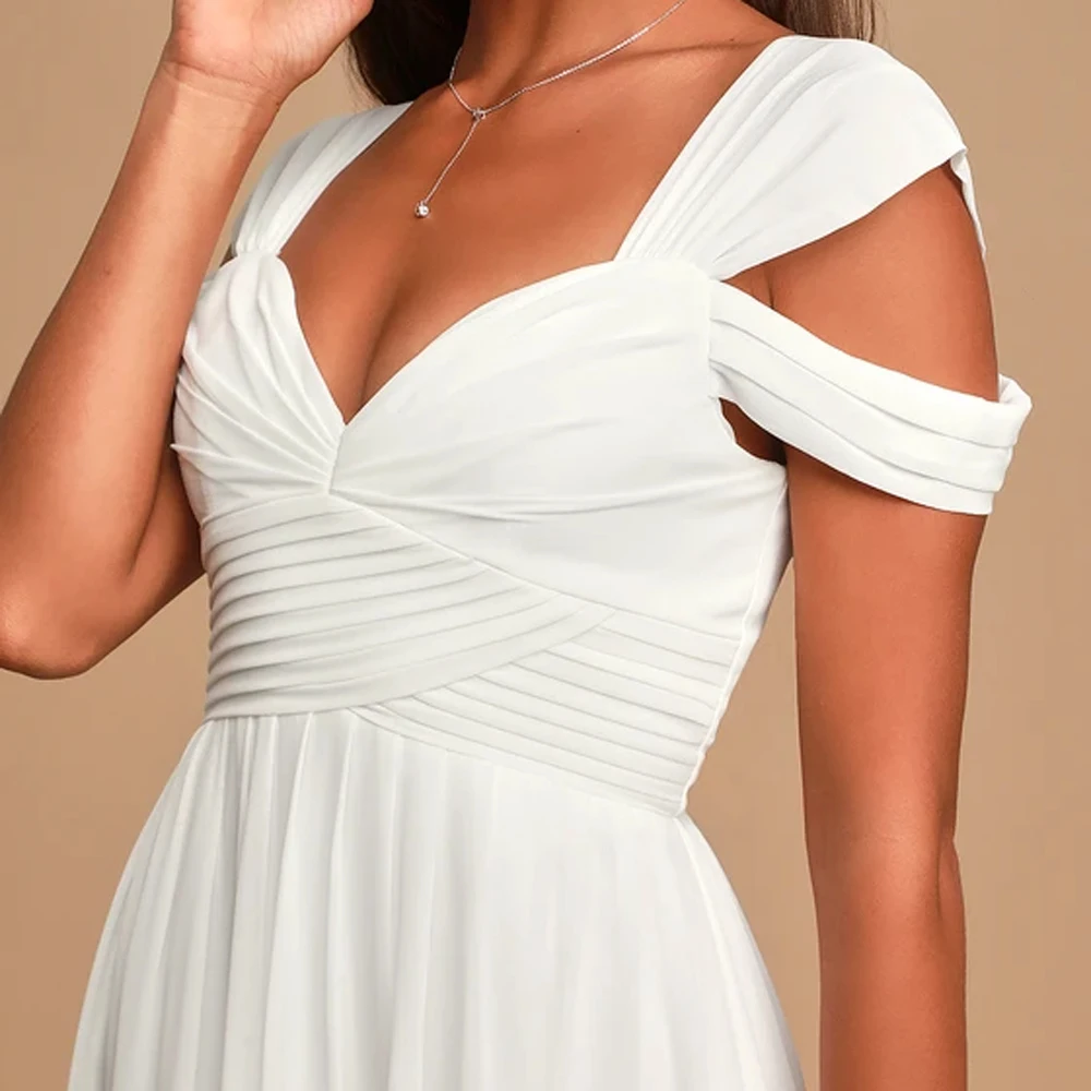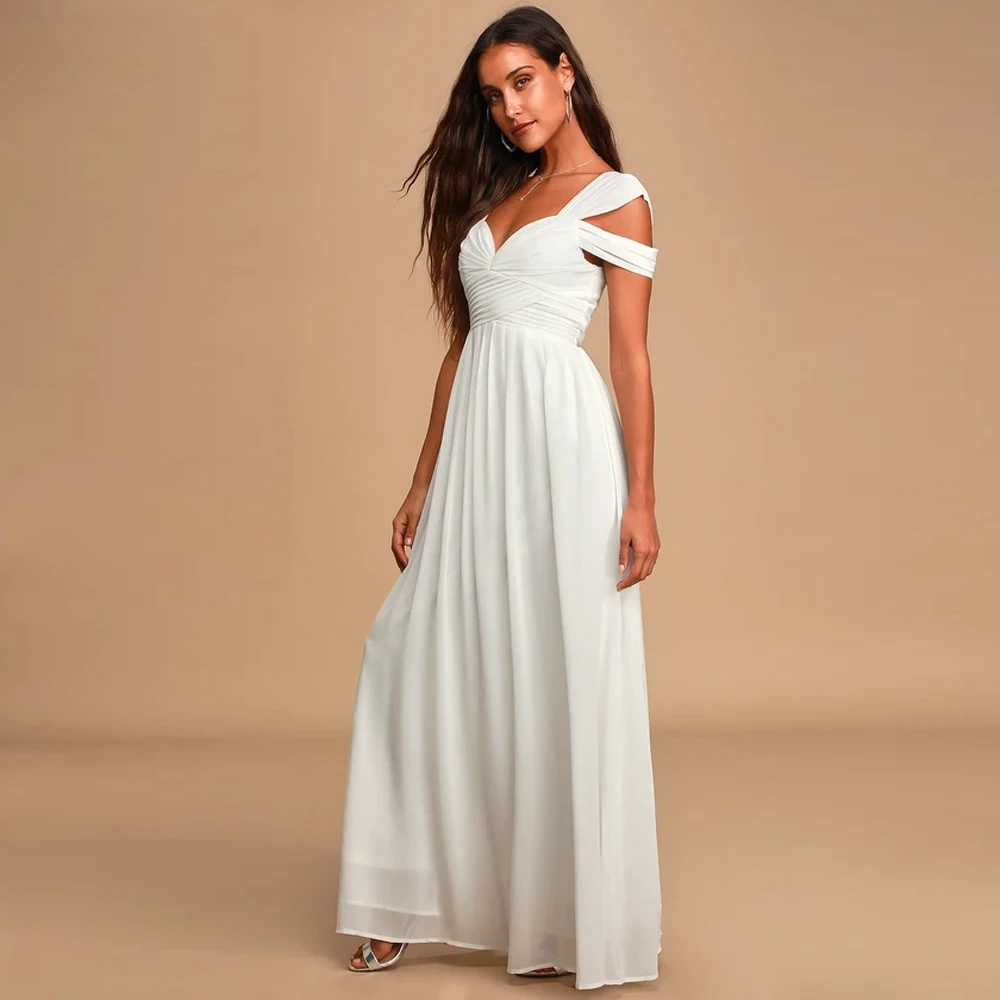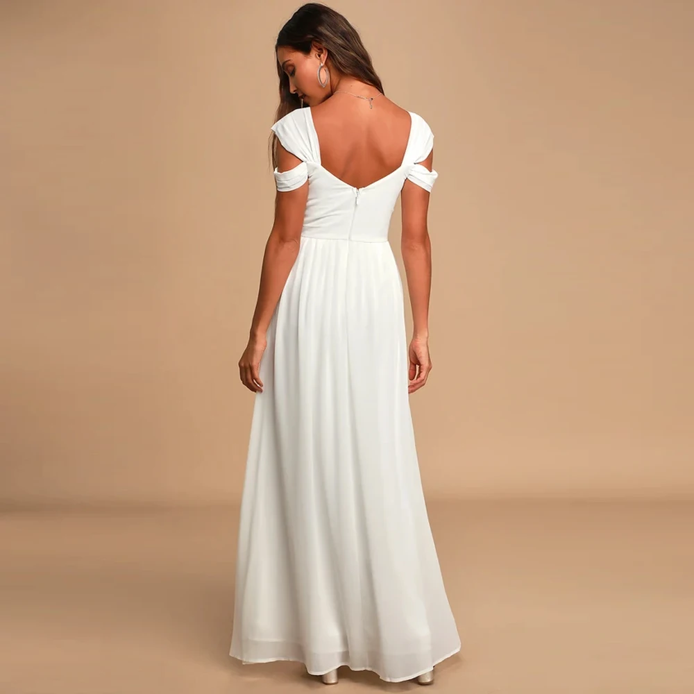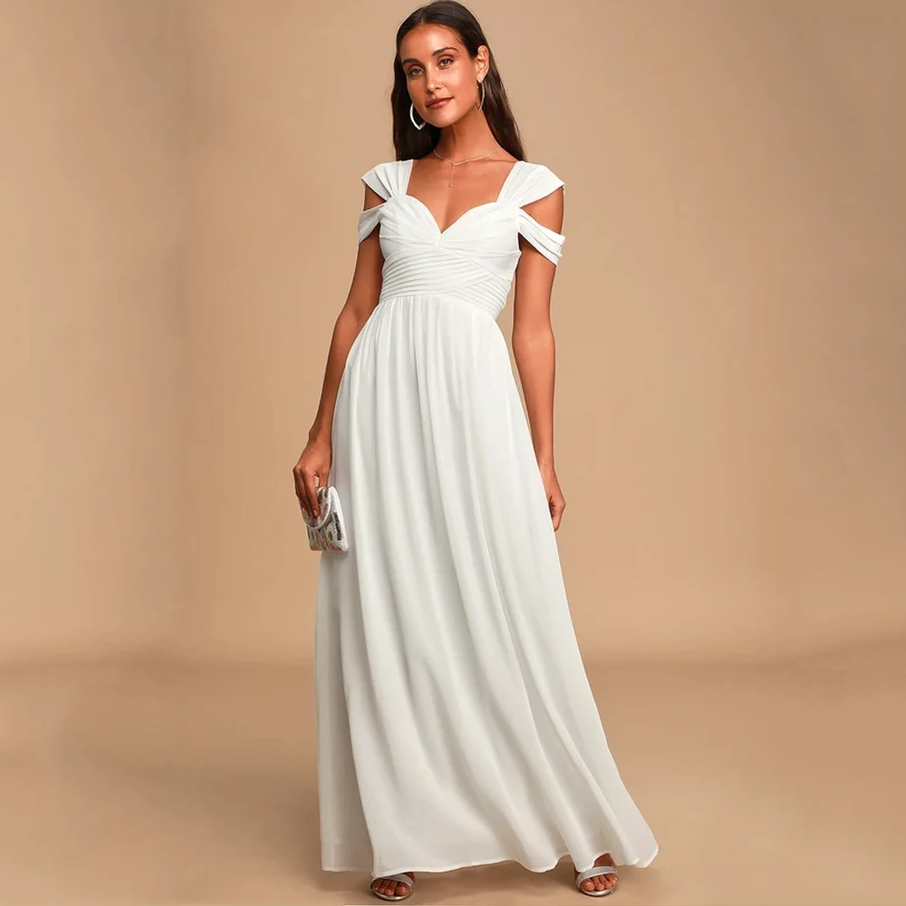 victoria’svogue 2021 Off the shoulder White Chiffon Long Dress Folds Pleated Backless A Line Summer Vintage Maxi Gown