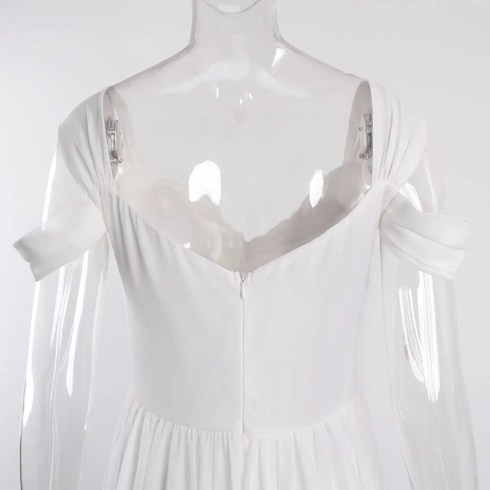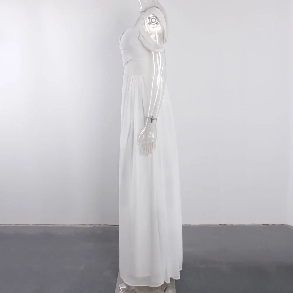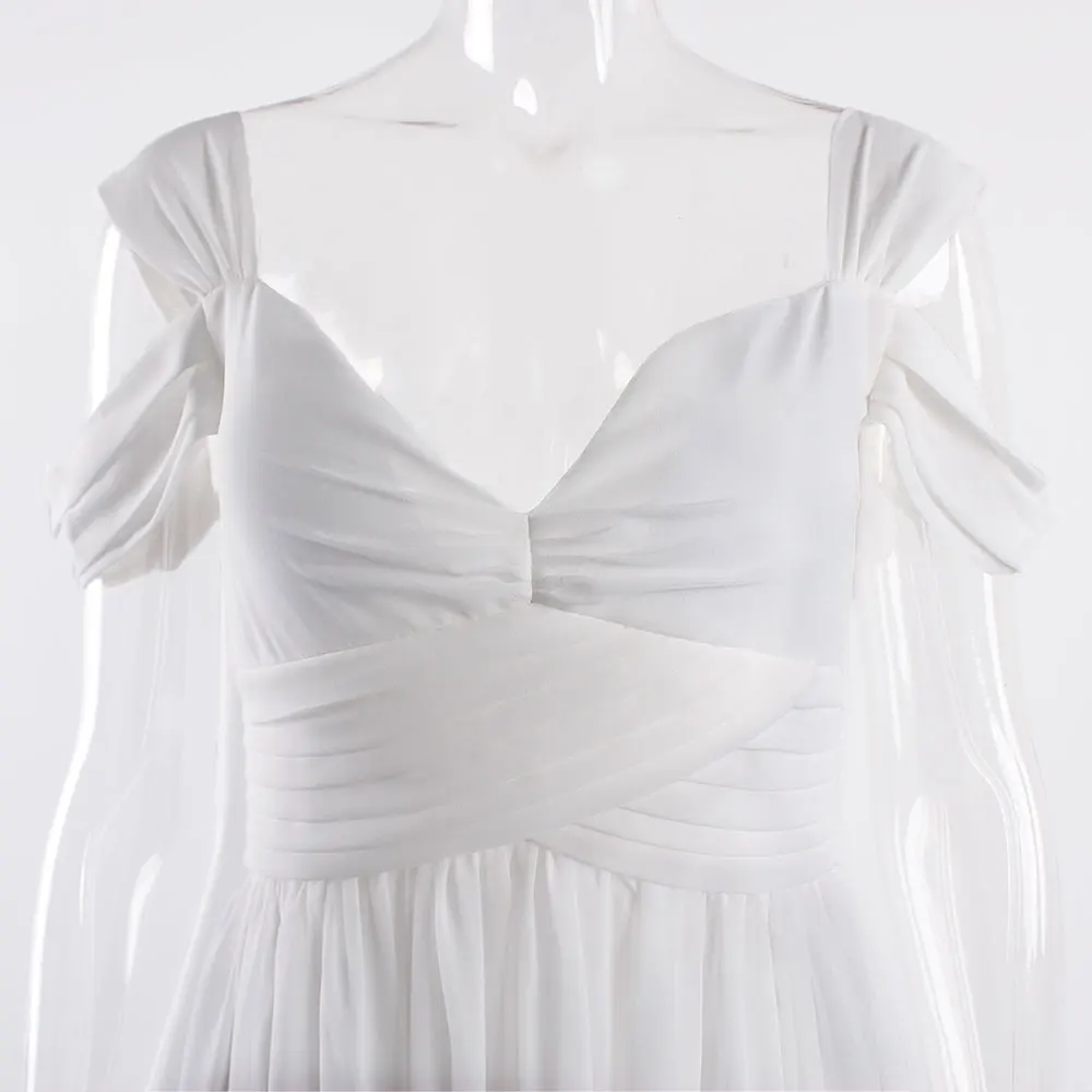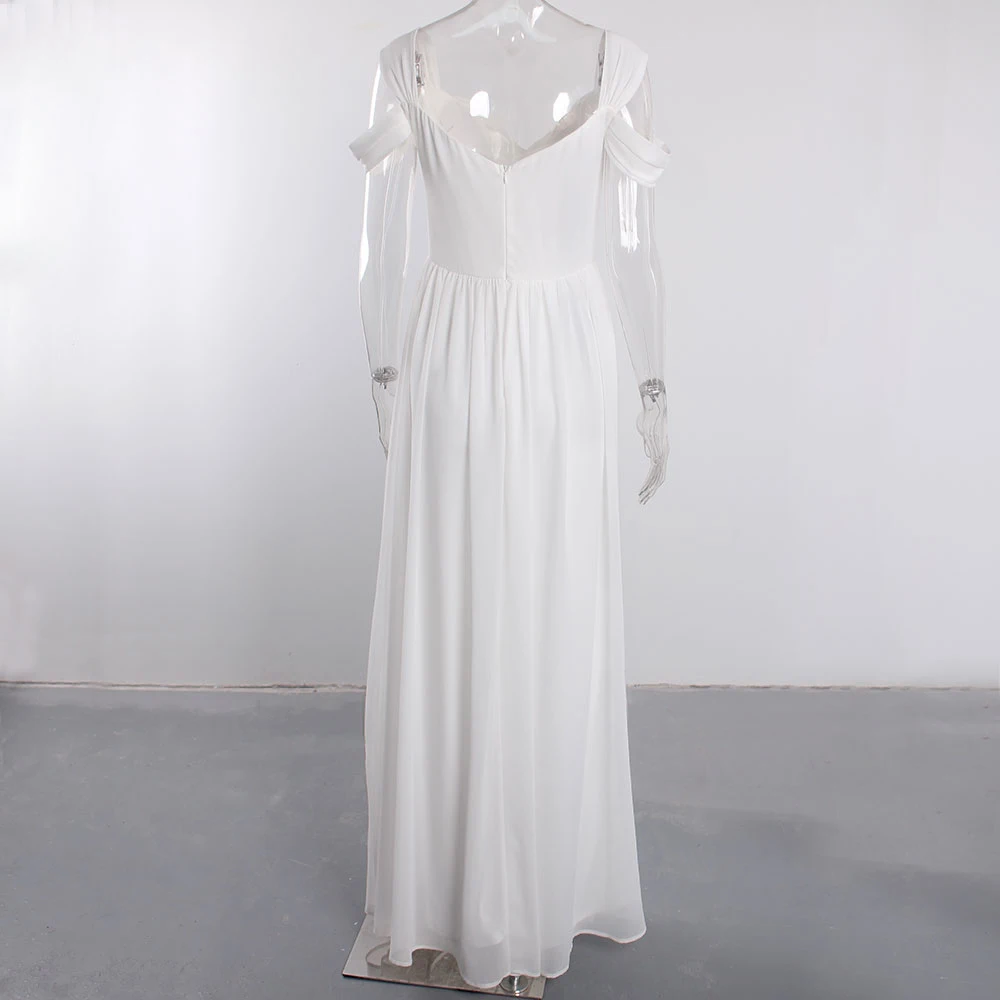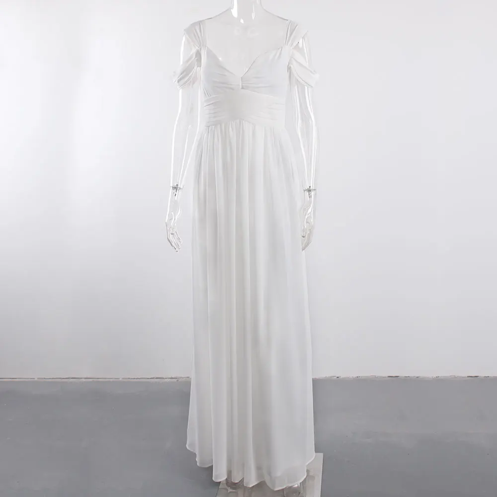 victoria’svogue 2021 Off the shoulder White Chiffon Long Dress Folds Pleated Backless A Line Summer Vintage Maxi Gown