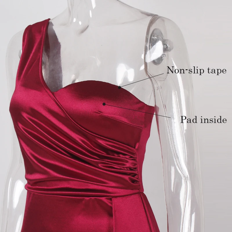 victori9a’svogue 2021 One shoulder Burgundy Satin Maxi Dress Split Leg Sexy long evening party dress gown with long train