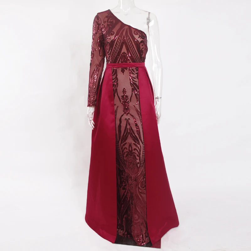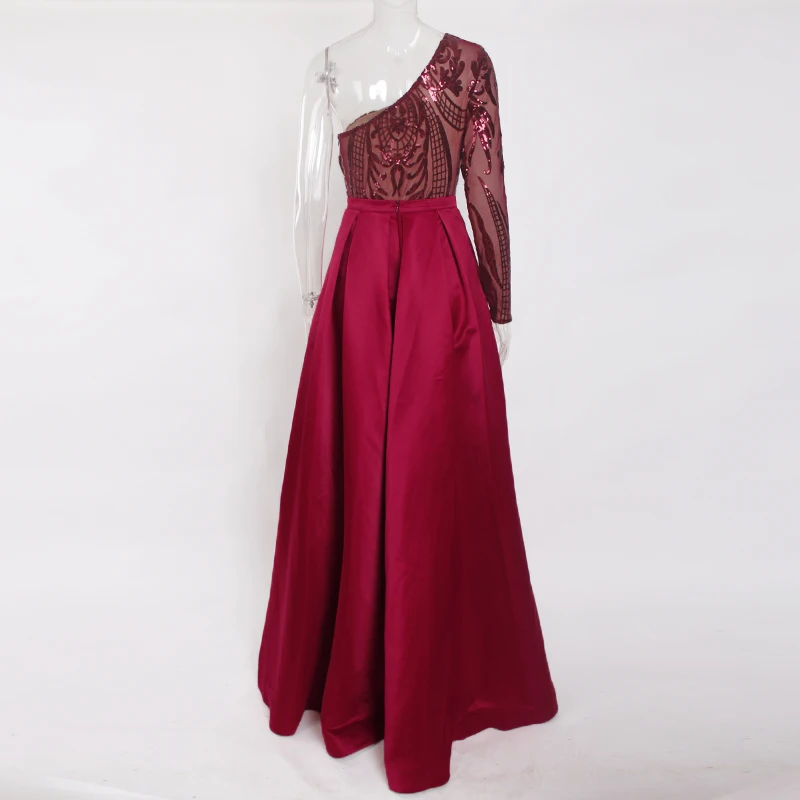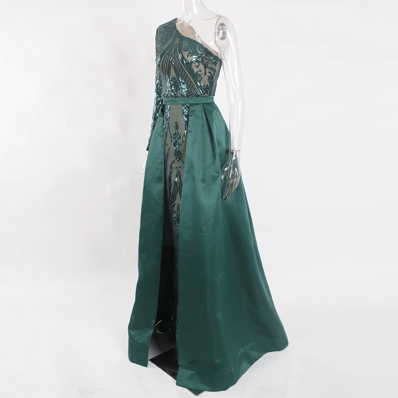 victoria’svogue 2021 One Shoulder Green Sequined Maxi Dress One Sleeve Long Evening Party Ball Gown Floor Length Long Dress Autumn Winter