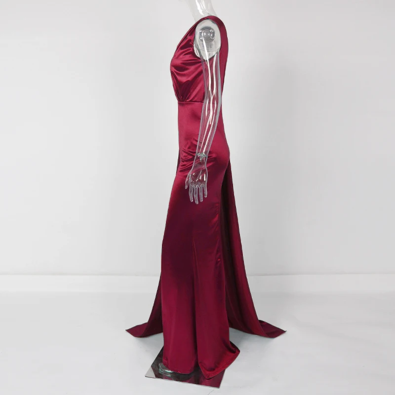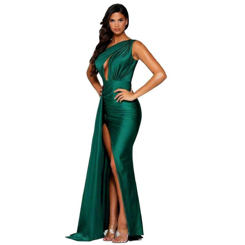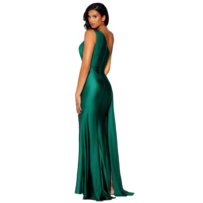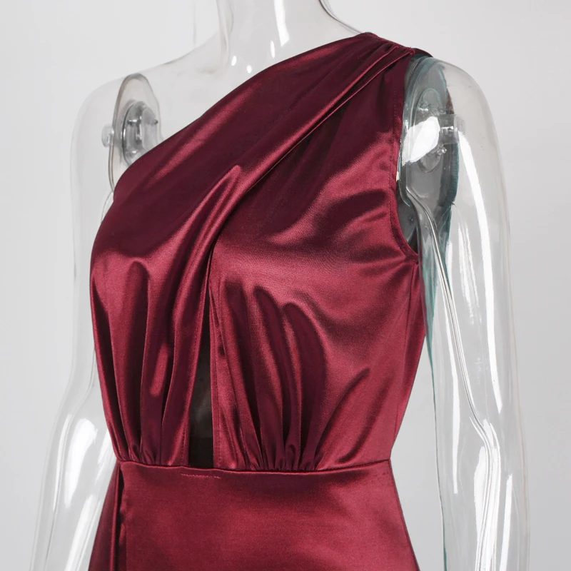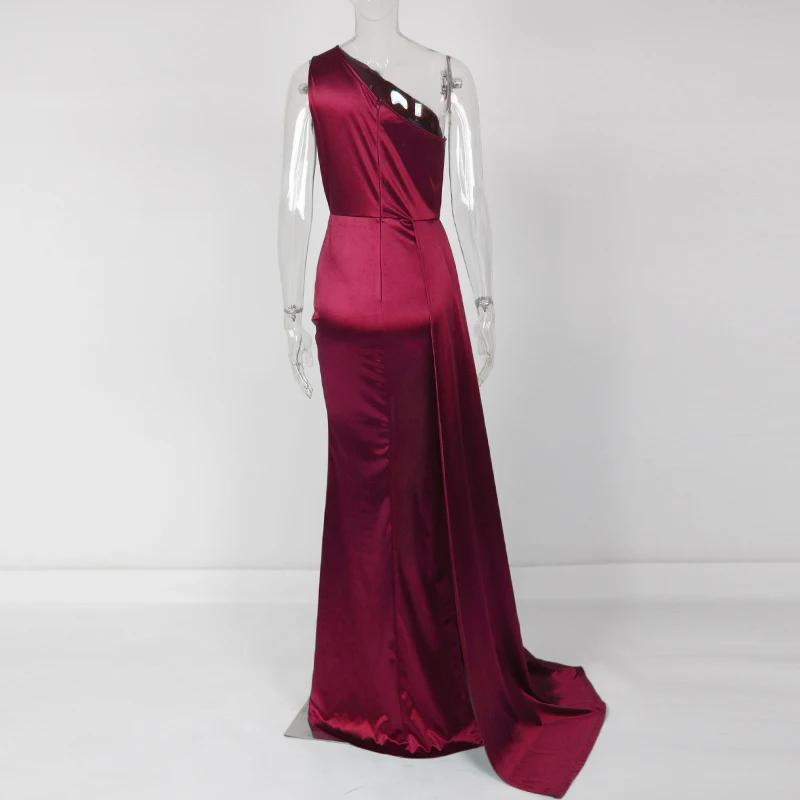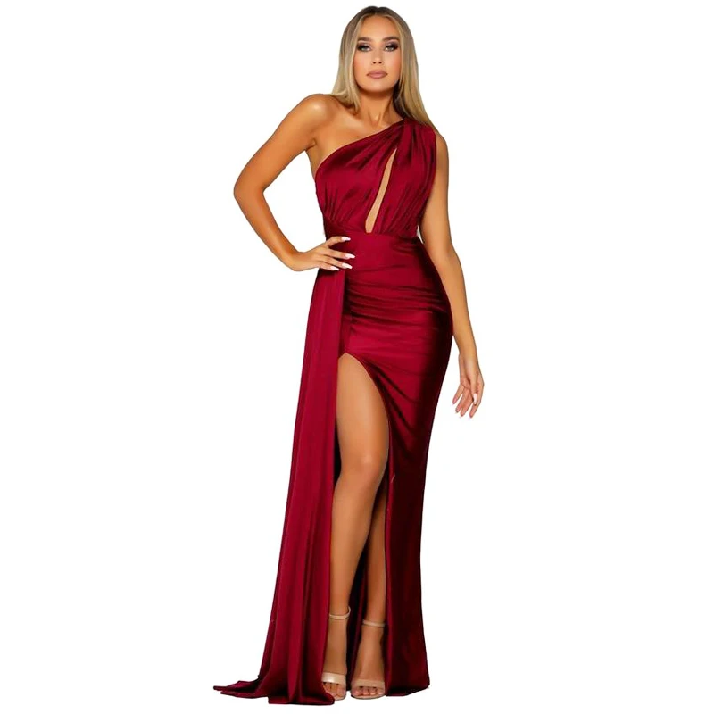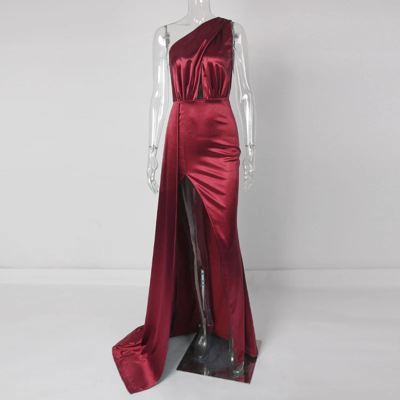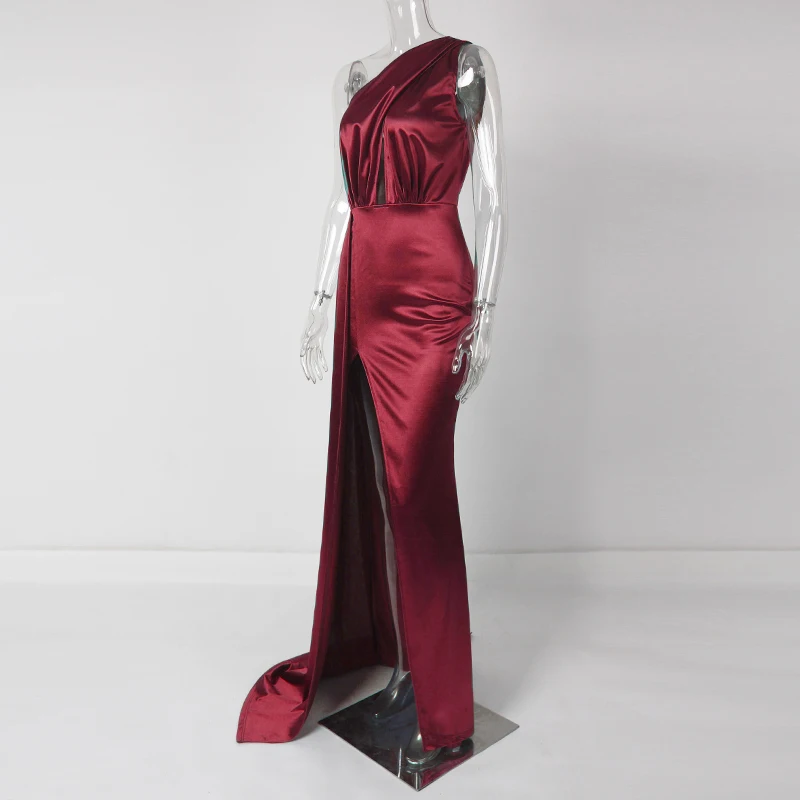 victoria’svogue 2021 One Shoulder Satin Maxi Dress Hollow Out Slit Leg Sexy Long Evening Party Dress Gown Green Burgundy