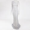 victoria’svogue 2021 Square Collar White Sequined Long Modest Evening Party Gown Maxi Dress Elegant Floor Length Full Sleeved One Shoulder Sequin Night Gown Evening Party Dress Bodycon Floor Length Backless Autumn Luxury Stretchy Mermaid Maternity Dress