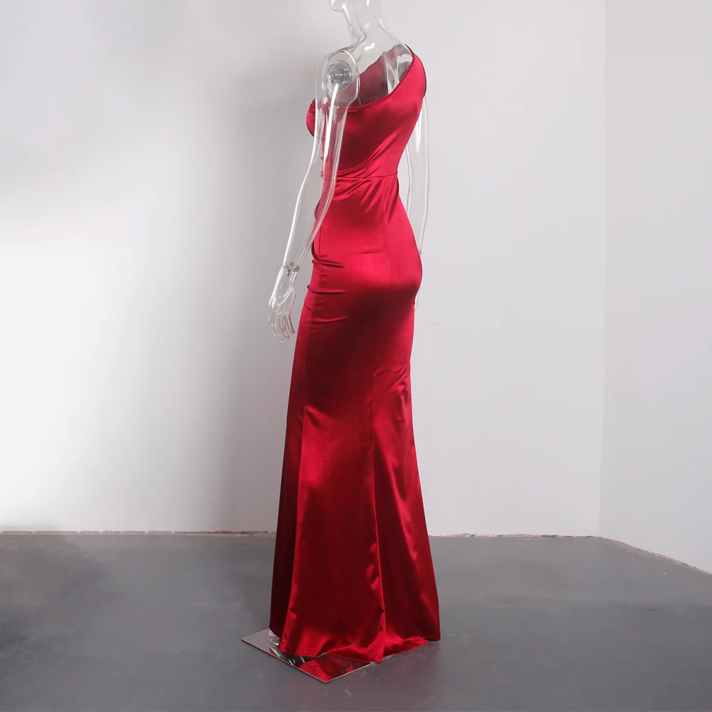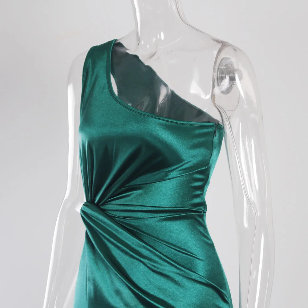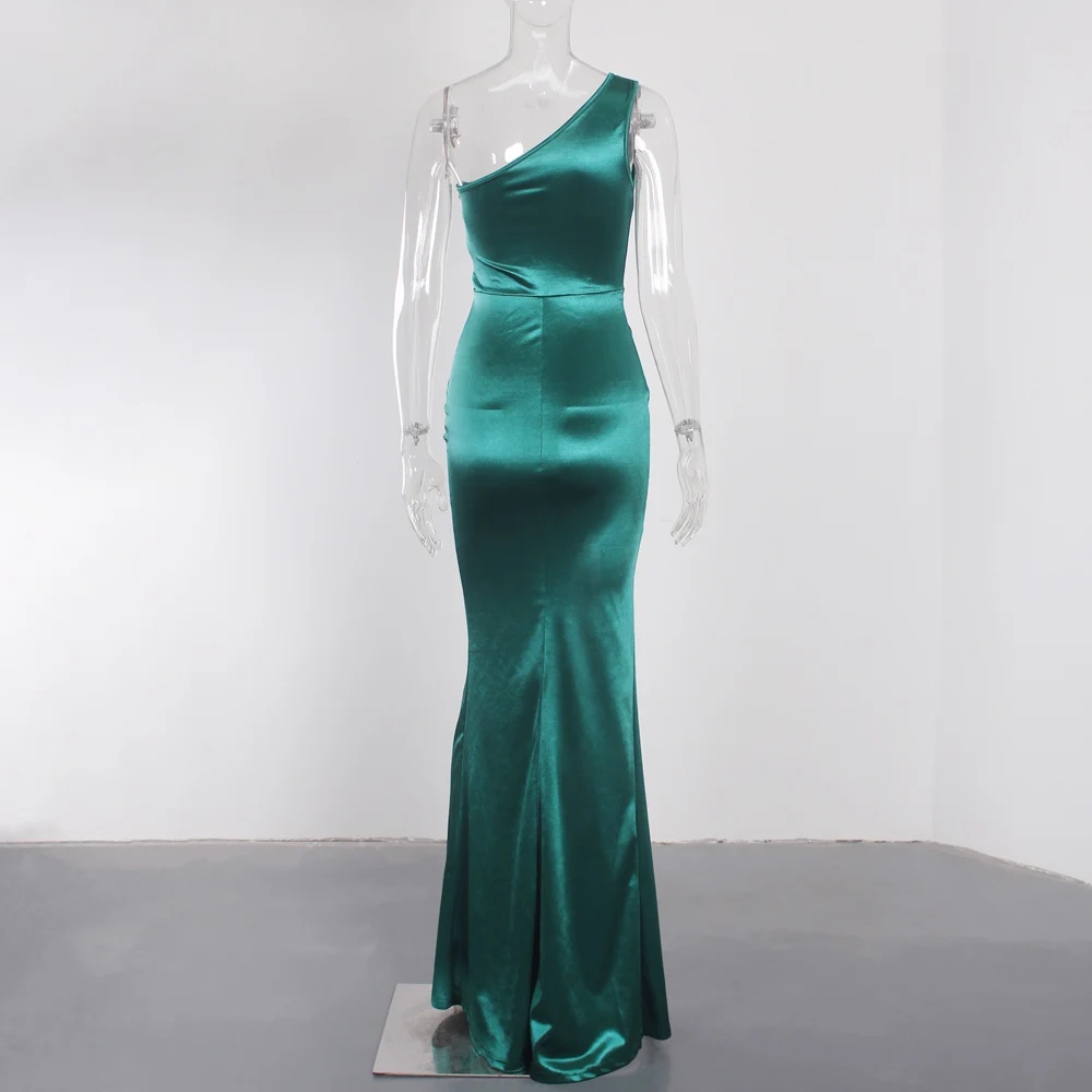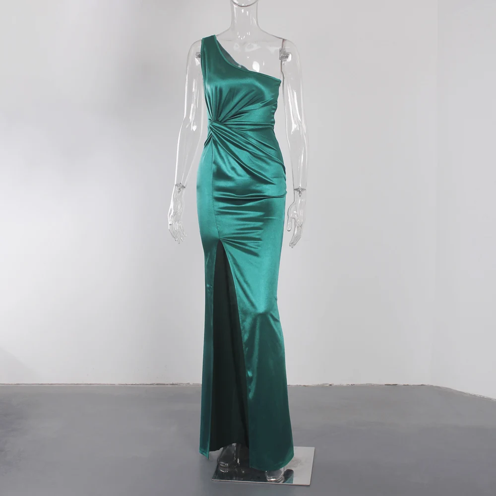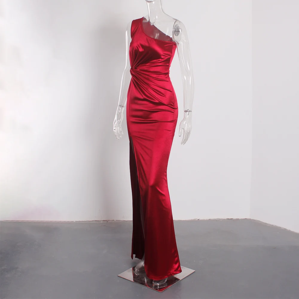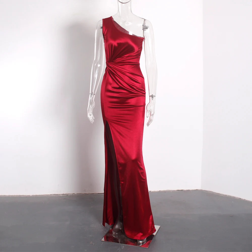 victoria’svogue 2021 One Shoulder Sleeveless Long Evening Party Dress Ruched Pleat Split Sexy Summer Prom Wear