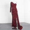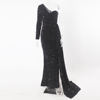 victoria’svogue 2021 One Sleeve Maxi Dress Split Leg Ribbon Autumn Winter Sexy Black Sequined Long Gown Robe