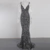 victoria’svogue 2021 Sexy Woman Sequin Dress Silver Maxi Dress Bodycon Strappy V Neck Lace Up Backless Stretchy Party Dress Green Burgundy