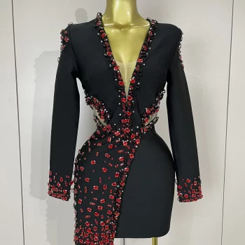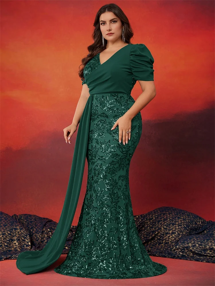 Victoria’s Vogue Plus Size Elegant V-neck Sequins Evening Dress Women Short Sleeves Mermaid Formal Luxury Party Streamer Prom Dress