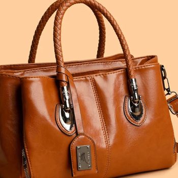 This bag is a bucket bag with a strong sense of design, made of fine lychee grain leather, which is of high quality and durable. The bag body is mainly in a soft tone, simple, elegant and easy to match. The most distinctive feature is its woven texture hand strap. The brown woven design not only adds a retro charm and craftsmanship to the bag but also enhances its overall fashion sense.