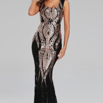 victoria’s vogue Sexy Strap Cross Back Sequins Evening Dress Backless Long Evening Party Dress