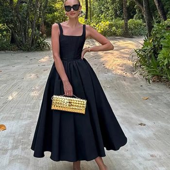 Victoria’s Vogue Elegant Solid Chest Wrap Suspender Dress Women Fashion Square Neck Sleeveless Holiday Vestidos Casual Female Black Streetwear