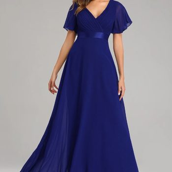 Victoria’s Vogue Evening Dresses Elegant V-Neck Ruffles Chiffon Formal Evening Gown Robe Vestidos De Fiesta Dress for Wedding Party