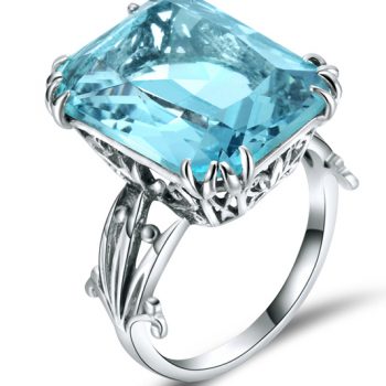 Victoria’s Vogue Luxury Square Charms Handmade Vintage Women’s 925 Sterling Silver Birthstones Sky Blue Crystal Wedding Ring Brand Jewelry