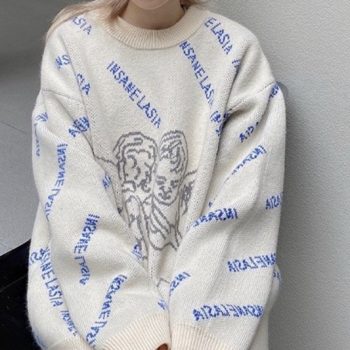 victoria’svogue 2021 Oversized Streetwear Angel Pattern Women’S Sweater Retro Lazy Pullover Trendy Brand Round Neck Fashion Sweater Women 2021 Winter