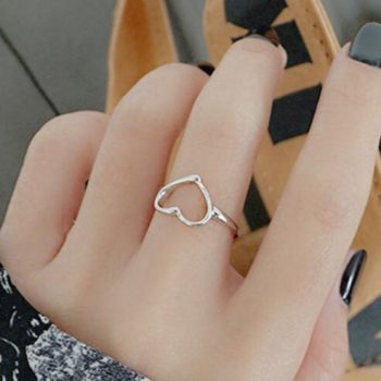 Victoria’s Vogue New Fashion Minimalist Personality Heart 925 Sterling Silver Jewelry Smooth Hollow Heart-Shaped Popular Opening Rings