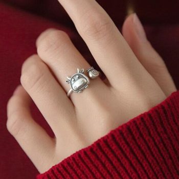 Victoria’s Vogue New Personality Zodiac Bull Retro 925 Sterling Silver Jewelry Sweet Calf Luck Bag Thai Silver Animal Opening Rings