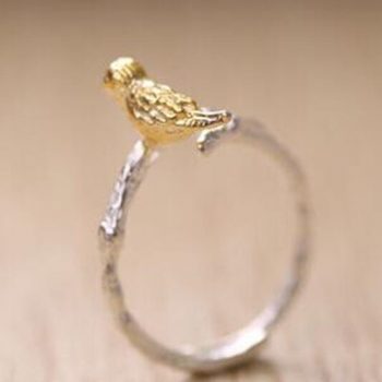 Victoria’s Vogue Hot Popular Personality Creative Fashion 925 Sterling Silver Jewelry Branches Golden Bird Exquisite Opening Rings