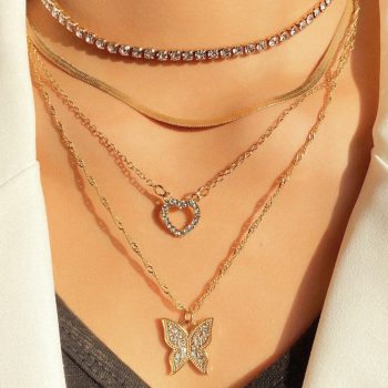 victoria’s vogue Trendy Multilayer Love Heart Butterfly Pendant Necklace for Women Gold Chain Necklaces Choker Gifts Jewelry