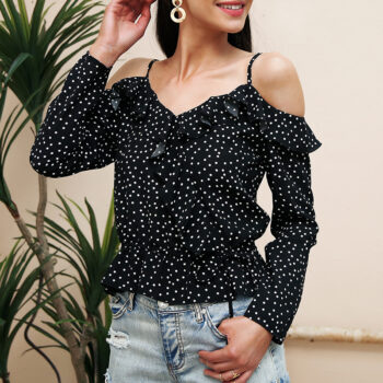 victoria’s vogue Sexy stap ruffle blouses shirts women V neck cold shoulder summer blusas feminina Vintage long sleeve white blouse top