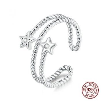 Victoria’s Vogue Two-star Open Ring for Girl 925 Sterling Silver Flowing Line Adjustable Finger Ring Women Statement Party Jewelry