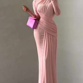 Victoria’s Vogue Puss Elegant Thin Irregular Pleats Dress Women Patchwork Full Sleeve Classic Simple Skinny Evening Prom Bodycon