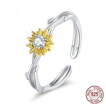 Victoria’s Vogue Silver Daisy Ring 100% 925 Sterling Silver Shiny Flower Adjustable Rings for Girl Women Statement Fine jewelry