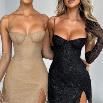 Victoria’s Vogue Elegant Glitter Sexy Mini Dress For Women Elegant Off-shoulder Backless Bodycon Night Club Party Short Dress Vestido
