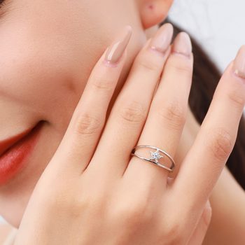 Victoria’s Vogue Authentic 925 Sterling Silver Simple Flowers & Leaves Sparkling Clear Zircon Finger Rings Fine Female Fashion Jewelry New Arrival Fashion 925 Sterling Silver Stars Ring Clear Zircon Double Layer Rings For Women Wedding Engagement Jewelry