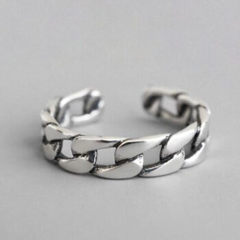 victoria’s vogue Retro 925 Sterling Silver Jewelry Not Allergic Chain Shaped Hollow Simple Old Domineering Opening Rings