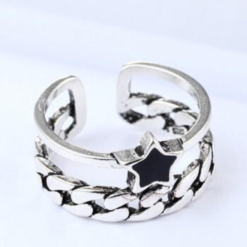victoria’s vogue 925 Sterling Silver Jewelry Personality Twist Double-layer Five-pointed Star Chain Opening Rings