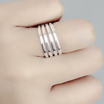 victoria’s vogue Smooth Diamond Four-line 925 Sterling Silver Jewelry Temperament Multi-layer Geometric Opening Rings