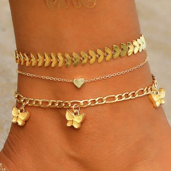 victoria’s vogue Bohemian Gold Butterfly Chain Anklets Set For Women Girls Fashion Multi-layer Anklet Foot Ankle Bracelet Beach Jewelry