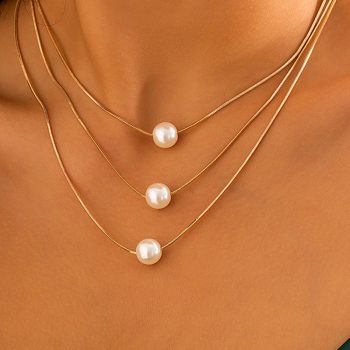 victoria’s vogue White Imitation Pearl Chain Choker Necklaces for Women Punk Multi Layered Thin Snake Chain Necklaces Jewelry Collier