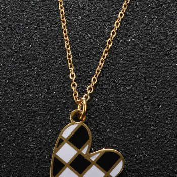 victoria’s vogue Trend Checkerboard Black and White Epoxy Peach Heart Pendant Necklace Hot Jewelery For Women and Girls Love Heart Choker Gifts