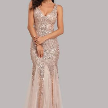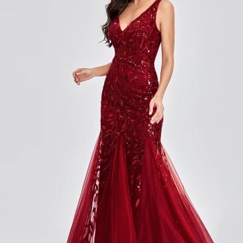 Victoria’s Vogue Sleeveless V-neck Tulle Sequins Cocktail Dresses V-back Mermaid Party Prom Gowns Women Formal Occasion Embroidered Robe Vestioes