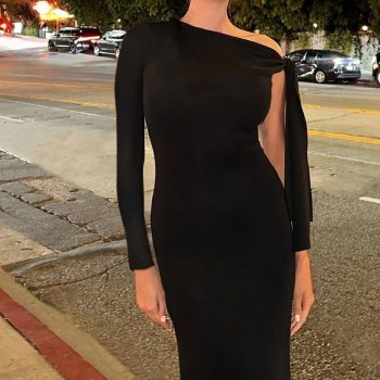 Victoria’s Vogue Women 2024 Spring Autumn Long Sleeve Party Club Evening Bodycon Basic Black Long Dress Wholesale Items For Business