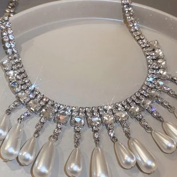 Victoria’s Vogue Luxury Water Drop Pearl Choker Necklaces for Women Long Tassel Crystal Necklaces Wedding Banquet Jewelry