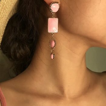 Victoria’s Vogue Boho Geometric Pink Stone Gold Border Drop Earrings For Women Gold Punk Dangle Earring Brincos Statement Jewelry Party Gift