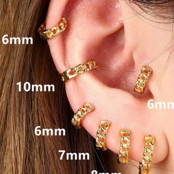 victoria’s vogue Sterling Silver mm Huggie Earrings Set For Women Gift Simple Design Chain Shape Circle Cartilage Hoop Earrings