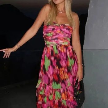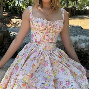 Victoria’s Vogue Elegant Flower Printed Women Mini Sling Dress Fashion Square Neck Sleeveless Backless Pleated Hem Dresses Lady Party A-line Robe