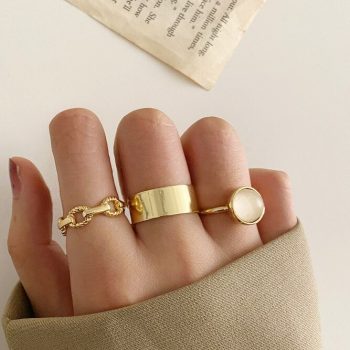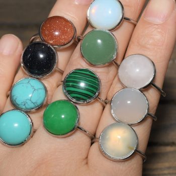 Victoria’s Vogue Simple Natural Stone Finger Ring Multi-Color Round Set Opening Ring Average Size Mother Gift Jewelry Accessories for Women