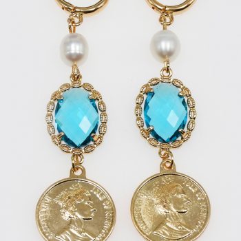 Victoria’s Vogue 6 Colors Crystal Charm Pendant Earring Real Freshwater Pearl Queen Coin Earring Coop Hoop Earrings for Women Party Friday Prom