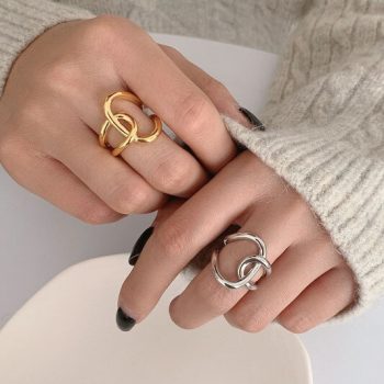 Victoria’s Vogue 925 Silver Fashion Simple X-Shaped Cross Twist Opening Adjustable Ring Hollow Geometric Finger Rings for Women Girls Jewelry