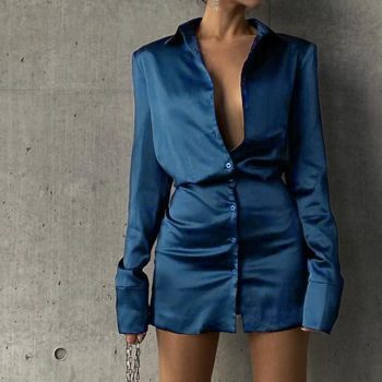 victoria’s vogue Silk Turn-down Collar Mini Dress For Women Long Sleeve Button Elegant Evening Sexy Dress With Collar Fashion 2021 New