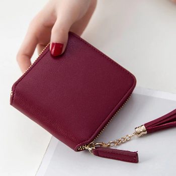 Victoria’s Vogue Simple Fashion Short Square Zipper Tassel Small Wallet Women Purse
