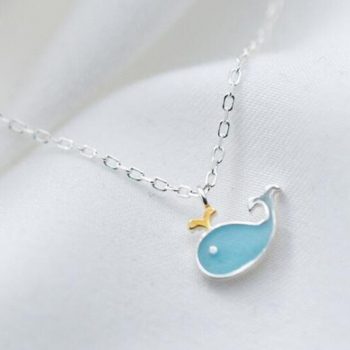 Victoria’s Vogue New Fashion Temperament Popular Sweet Animal 925 Sterling Silver Jewelry Blue Cat Little Whale Dolphin Fish Women Necklaces