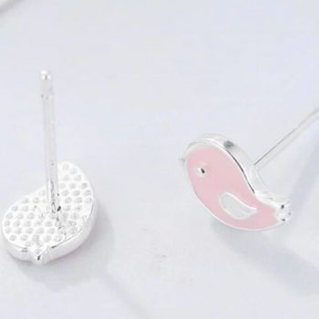 Victoria’s Vogue New Simple Style Fashion 925 Sterling Silver Jewelry Pink Epoxy Sweet Cute Bird Women Gift Stud Earrings