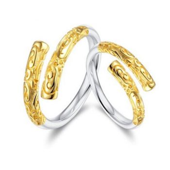 Victoria’s Vogue New Journey Personality 925 Sterling Silver Jewelry Personality Golden Hoop Stick Couple Opening Rings