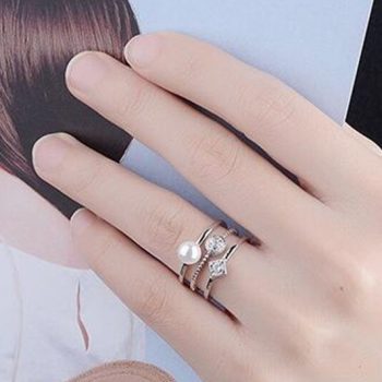 Victoria’s Vogue New Fashion Creative Beautiful Double-Layer Geometric 925 Sterling Silver Jewelry Square Crystal And Pearl Opening Rings