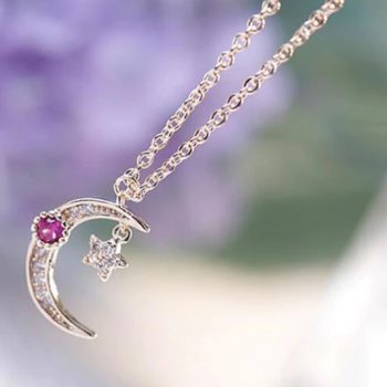 Victoria’s Vogue New Temperament Moon And Star 925 Sterling Silver Jewelry Not Allergic Rose Gold White And Pink Crystal Women Necklaces